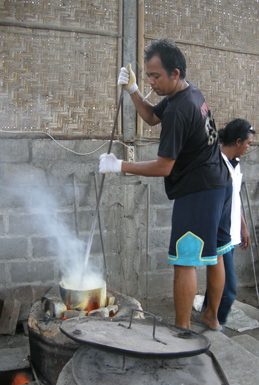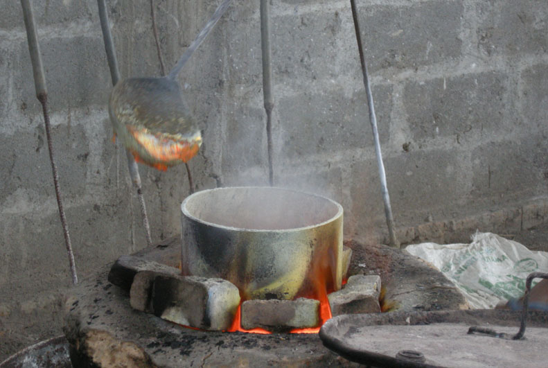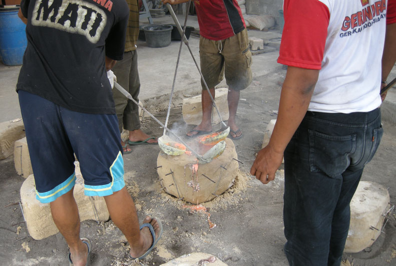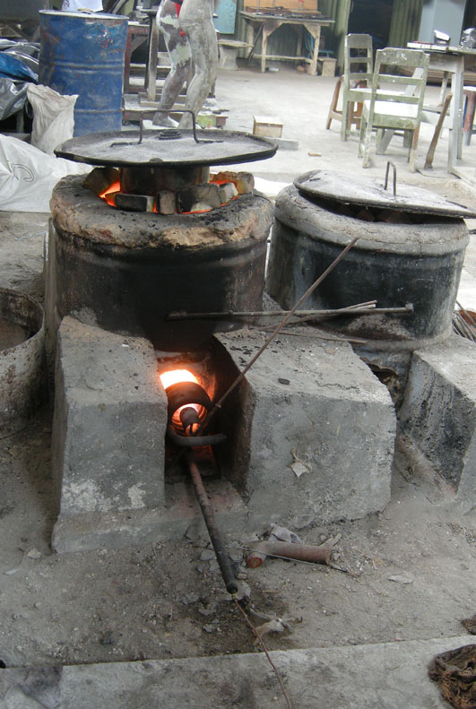 鋳造をするのに高松も、ジョグジャカルタも必要なものがなんでもすぐに手に入る環境にはありません。そして彼女は足りないものは何かで代用するというすべを知っています。送風機は最近購入できたらしいですが、今までは扇風機でやっていたらしいです。燃料はコークスでなく木炭です。