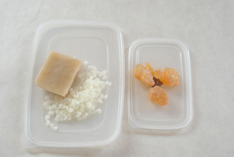 蝋を貼ったとき雌型から離れやすいようにお水に浸して帰ります。