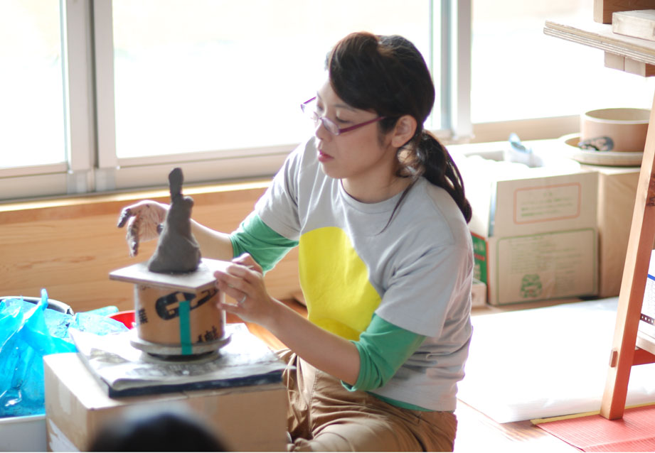 彼女は自宅の庭で、工房を構え鋳造をしています。