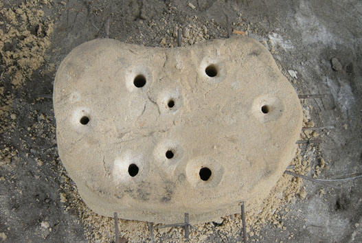 これは〈湯口:金属を注ぐ入り口〉が4つ、〈上がり:注いだ金属があがってくる穴〉が4つある型です。